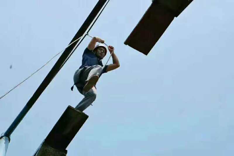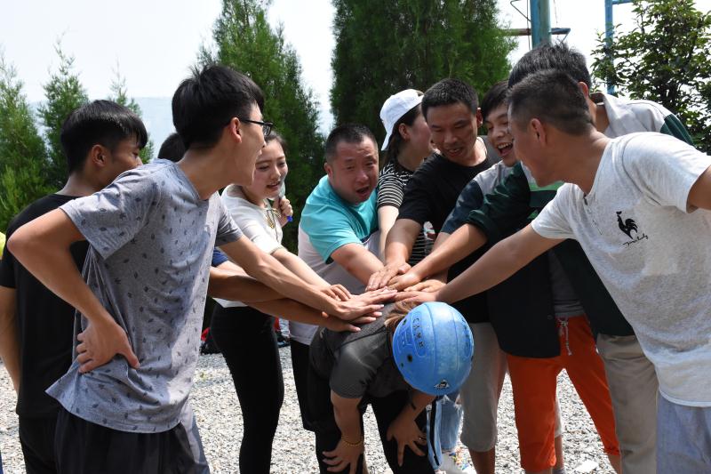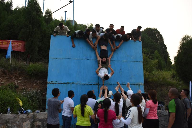 在訓練過程中,全體員工被分爲三支隊伍並(bìng)展開瞭激烈的競争,8米的高空斷橋,真正的個人挑戰,敢於挑戰便是對自己的一大突破,隻有勇 於不斷的去突破自己,才能在工作、生活中有所成長,有所改變;所有學員站在1.5高的背摔台上背對著(zhe)大家,身體筆直的倒下,由下面的夥 伴将其接住。面對這個挑戰,敢不敢将自己的後背交給隊友?敢不敢充分的相信隊友?如何去建立信任……通過訓練活動讓員工們體驗到解 決問題的方法,員工們之間面對同樣一個問題所表現出來的态度,如何達到共識,並(bìng)進行配合共同解決。最終大家齊心協力在規定時間内完 成瞭超音速、背摔、斷橋、有軌電車、求生牆等衆多項目。